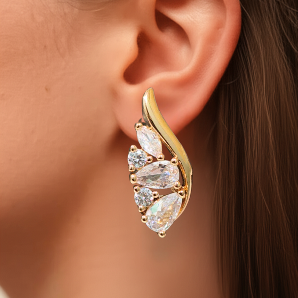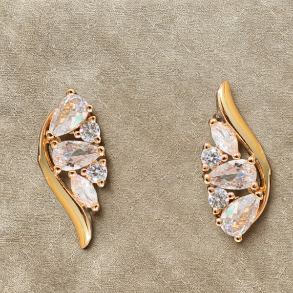 Add a touch of nature’s elegance to your ensemble with the Graceful Bloom Crystal Vine Earrings. Crafted in a graceful vine-like design, these earrings feature marquise and teardrop-cut sparkling cubic zirconia stones set in a luxurious gold-tone finish. Perfectly blending sophistication and charm, they hug the ear gently for a refined, feminine look.