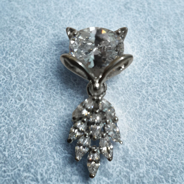 Add a touch of mystique and elegance to your jewelry collection with our Celestial Fox Diamond Drop Earrings. These stunning earrings feature a brilliantly cut, fox-shaped stud adorned with a shimmering array of cubic zirconia crystals, cascading down in a graceful, leaf-inspired drop design. The blend of pink and violet tones under the light adds a magical sparkle, perfect for special occasions or evening glam.