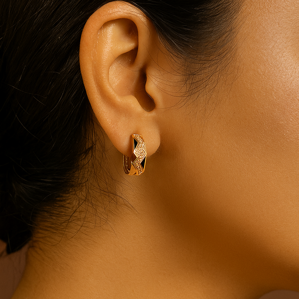 Turn heads with the Twilight Gleam Hoop Earrings — a perfect fusion of contemporary chic and timeless elegance. Crafted in high-polish gold-tone alloy, these huggie hoops feature a dynamic zigzag design embellished with a dazzling row of micro-set cubic zirconia stones. The geometric pattern adds a bold edge while maintaining a minimalist charm, making them ideal for both casual sophistication and evening glamour. Lightweight and secure with a snap-lock closure, these earrings are your go-to choice for effortless everyday luxe.